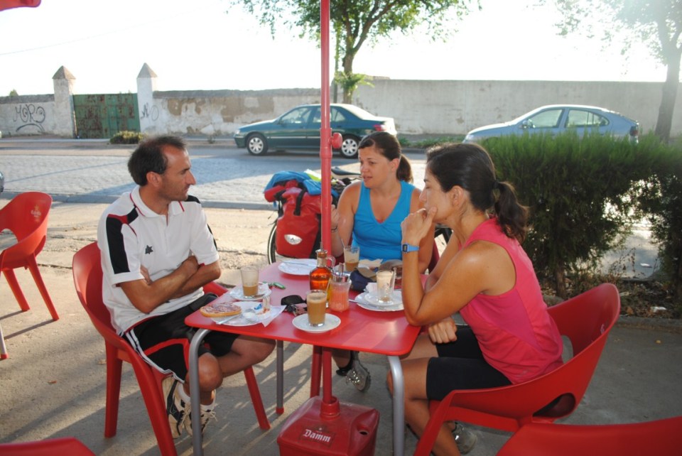 Me encanta ver que durante la conferencia de Arturo sobre el viaje “Vitoria-Beijing 2008” hay muchos niños y jóvenes interesados en la bicicleta. Preguntan bastantes cuestiones, entre ellas cuántas cámaras necesitaron para el viaje (cinco). El Club cicloturista “Quintana es natural” mueve un gran número de practicantes, y la verdad, las rutas que existen en los alrededores nos sorprenden muy positivamente. A los que somos de Almería, parece que Badajoz nos queda algo lejos y es una gran desconocida, Mérida y poco más es los que se nos ofrece. Ayer en Azuaga y hoy en Quintana vemos que existen muchas rutas de montaña y otras cicloturistas que incitan a volver a este entorno. Para mí, redescubrir la zona de La Serena de forma cicloturista ha sido un verdadero placer.