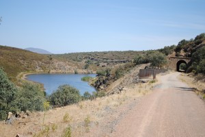 Empezamos a cruzar numerosos túneles, a ver inmensas zonas de jaras, olivos, encinas, … Ya decimos cuánto disfrutamos de esta vía que consta de 52 km y la comparamos a las mejores que hemos visitado. Arturo sigue identificando numerosas aves y no para de decir que tiene que volver a la zona a ver el paso de las grullas. Sabemos que en Sevilleja hay un Centro de Estudios de Rapaces Ibéricas que es el  más antiguo de España.
