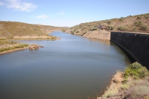 El viaducto de Azután nos sorprende al igual que el Guadalupejo lo hizo anteayer. Se parecen mucho, de hecho pertenecen a la misma vía como podemos leer. Tiene 40 metros de alto. Abajo, en el río, la gente hace piragüismo también.