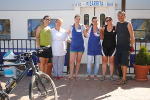 En el exterior del restaurante nos esperan  Emilio, presidente de la Mancomunidad de la Vía Verde de la Jara, Yolanda, Iván, Nuria y el pequeño Uli. Nos explican que esta vía de tren nunca llegó a funcionar… Otra gran infraestructura que nunca entró en servicio. La Vía une Calera y Chozas (donde nos dirigimos) con la estación de Santa Quiteria.