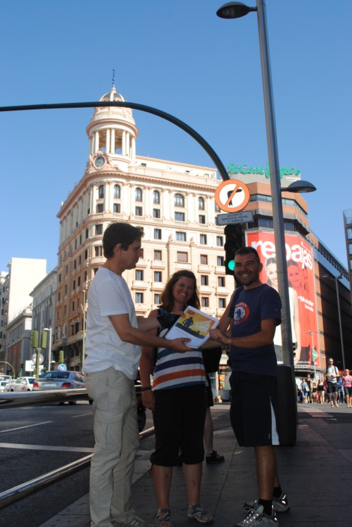Después del día de ayer en que se eligio descansar durante parte del día hoy iba a ser un día lleno de actividad. Comenzamos acercandonos a donde unos conocidos «Trixi» Desde hace varios años esta empresa situada en la calle Los Jardines, muy cerca de la calle Montera se dedicada a alquilar bicis y a organizar tours por el centro de Madrid. Missu es el gerente y nuestro guía Hussein nos van desgranando, cada uno en su terreno, el negocio y parte de la ciudad.
