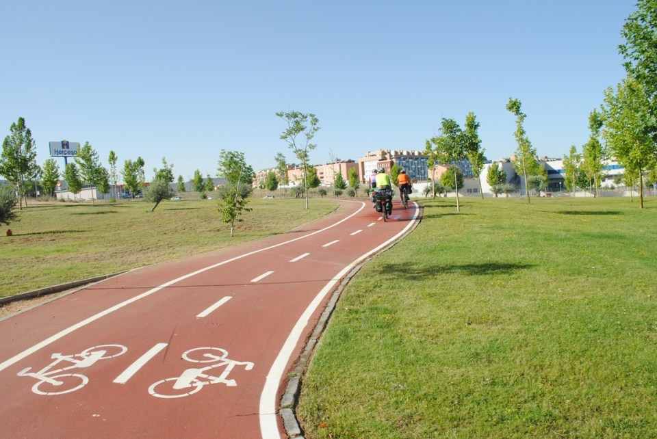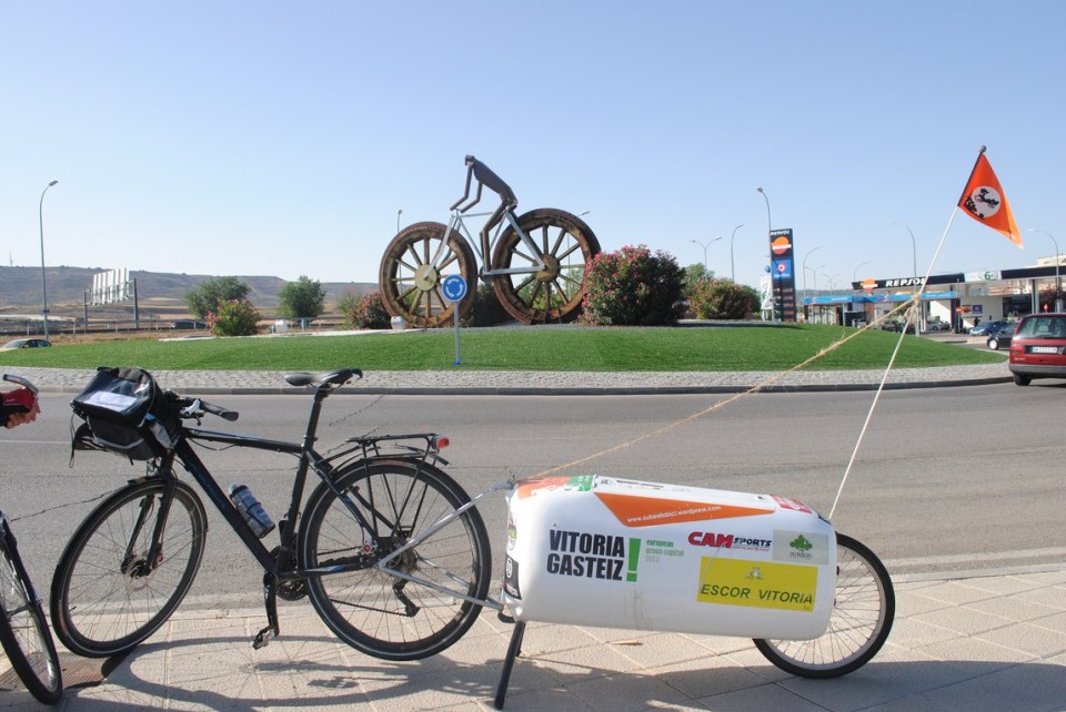 Un poco antes, justo a la salida de Guadalajara nos hemos encontrado con una rotonda coronada por una gran bicicleta. Un monumento hermoso que se ha convertido en un hito en la ciudad. La gente se refiere a la “rotonda de la bici” para darnos indicaciones.