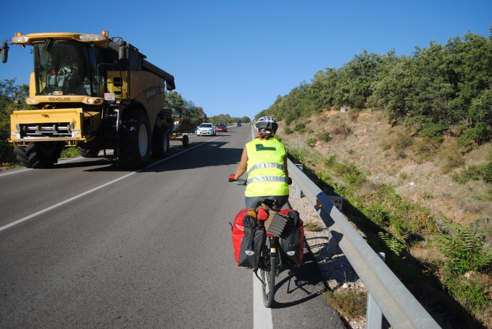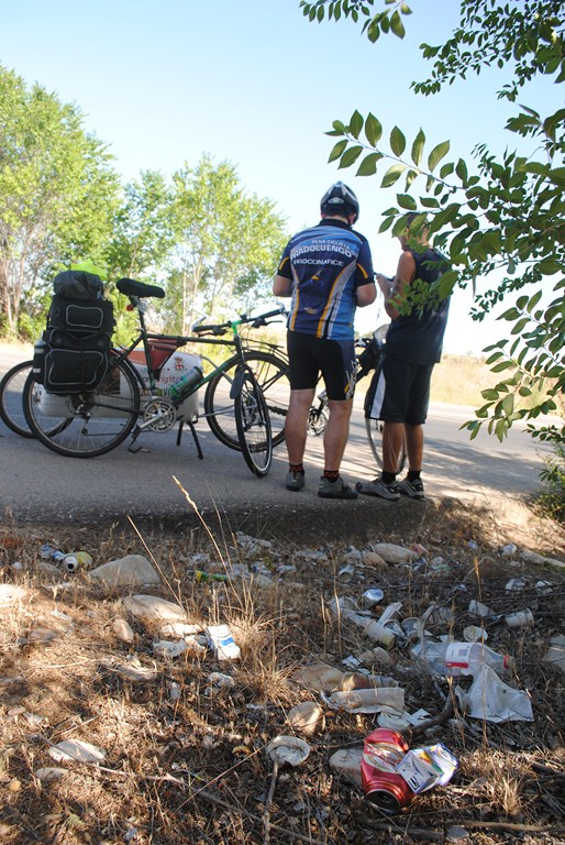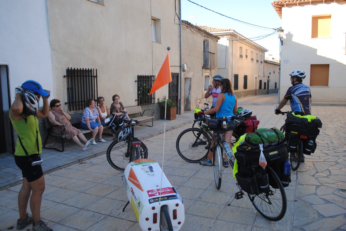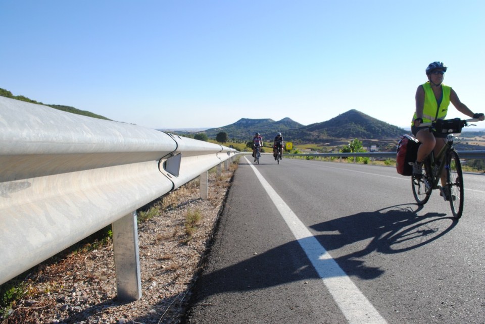 Los primeros kilómetros de la ruta suceden junto a la autovía, por la carretera de Servicio. A mi me estresa acercarme y salir de las ciudades. Antes lo llevaba más o menos. Ahora no es que me de miedo, simplemente me agota mentalmente. Siempre permanezco en alerta. No puedo evitarlo. De hecho le he avisado a Miguel de que los coches circulaban a gran velocidad en el carril de “desaceleración”. Y en un descuido nos llevamos un buen susto. Mari Carmen y yo lo hemos vivido bien porque estábamos justo destrás de el. Miguel en ese momento iba hablando con Cristina en paralelo cuando un coche que salió de la autovía paso rozándole. A veces los accidentes los provocan los coches y en otros somos los cicilistas los que parece que los forzamos. Afortunadamente no ha sucedido nada y hemos seguido a ruta como si nada hubiese sucedido.