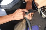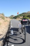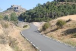 Salimos de Jadraque mal desayunados con dirección Negredo. En poco tiempo ganamos cierta altura. La tortuga y el perezoso se van quedando en la retaguardia del grupeto. Cristina se levanta cansada y dormida. Tanto que en un momento de despiste mirando al suelo se le va la bici y pierde el equilibrio. Una caida sin más y sin importancia. Ella se ha vuelto dura aunque de vez en cuando los kilómetros acumulados pasan factura. Algo normal y más sobretodo cuando hablamos de una persona que se ha lanzado con toda la energía mental del mundo ha realizar esta aventura pero con poca preparación fisica.