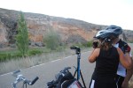 Muy cerca de La Riva de Escalote aparecen unas peñas a ambos lados de la carreterilla. Mis ojos se fijan en las manchas blancas en la pared y enseguida aparecen tranquilos los buitres y algun alimoche. Nos da tiempo a parar las bicis, sacar el tripode, colocar la camara de video y filmar a estas rapaces. Un buitre y un alimoche se animan a deleitarnos con su majestuoso vuelo. Impresina verlos tan cerca. A menos de kilometro y medio de este lugar un zorro se nos cruza por la carretera. Lo vemos tan cerca que nos ilumina una sonrisa. Estamos contentos de ver animales.