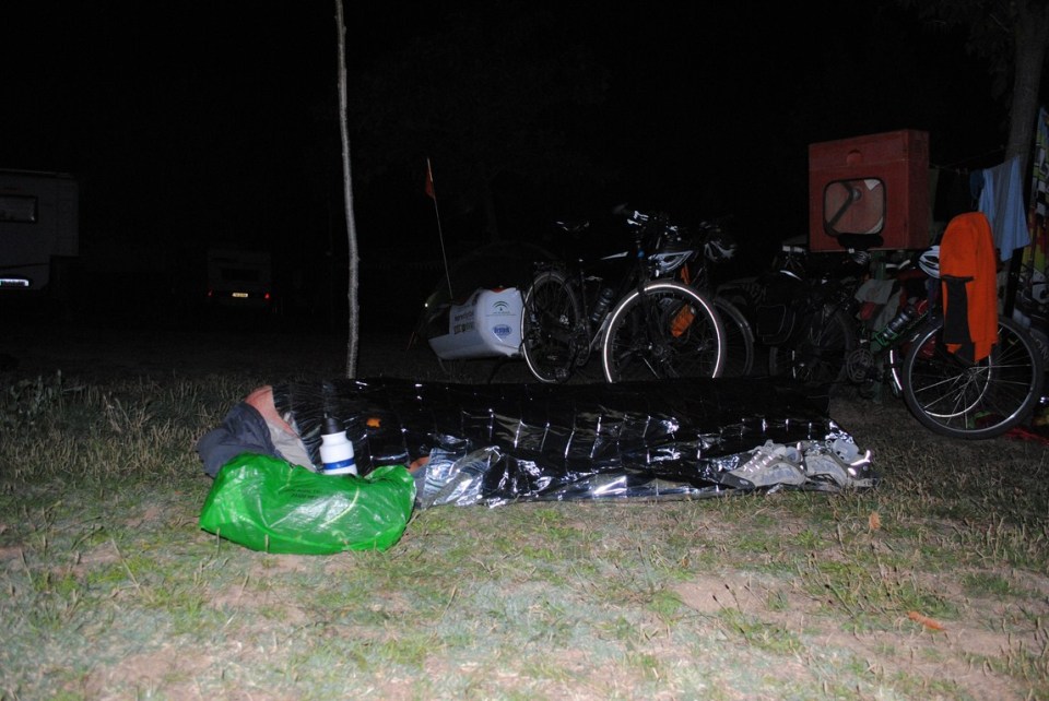 Ha sido una noche fresca. Llevamos dos tiendas para cinco y Miguel erre que erre quería dormir fuera. Se abrigo con una tela térmica y nos dijo que no paso frió. El problema por estas tierras no es solo el fresco de la Noche sino el rocio. Y algo si que hubo.
