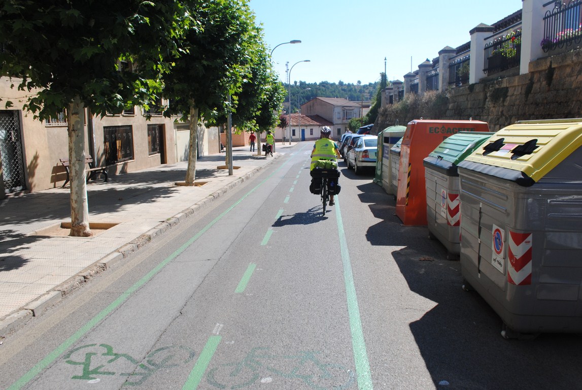 Cruzamos Soria de una lado a otro y en esos 4 o 5 kilómetros no encontramos ningún bicicarril excepto esta ciclocalle. Igual es que no hemos elegido la zona «adecuada». Tampoco se ven muchas bicis por la ciudad.