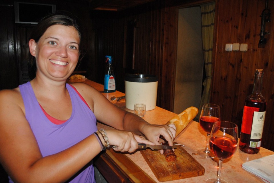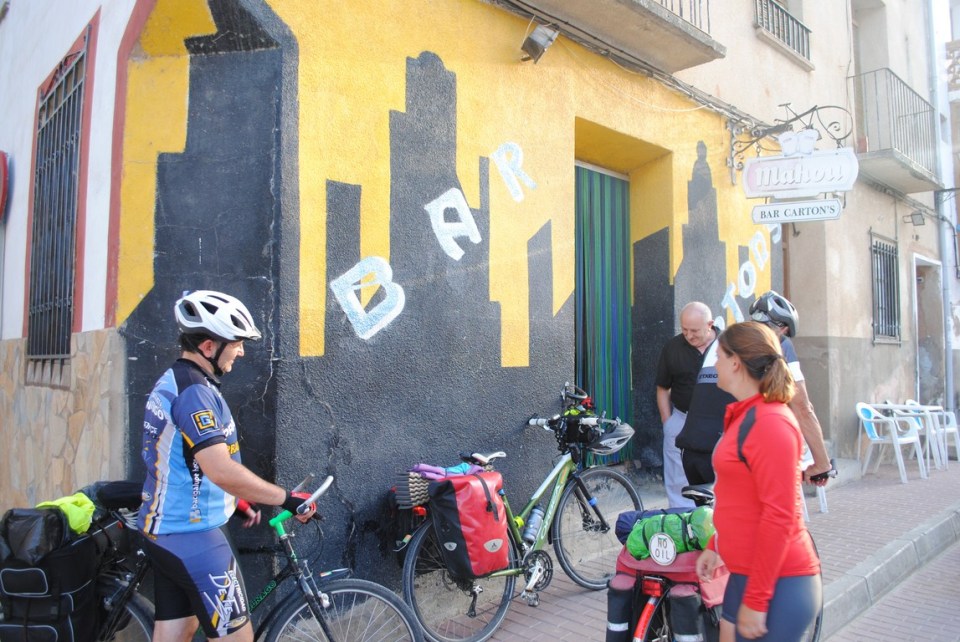 Nos recomiendan parar en el bar de Cartons a probar el chorizo riojano y asi lo hacemos. Cumplimos con un rioja y Antonio, el dueño, nos deja un trozo de chorizo, la tabla y el cuchillo. Algo picante. nos gusta. Me vienen recuerdos de mi niñez y de mi adolescencia, cuando los abuelos mataban el cerdo en Redecilla del Camino. Pero a mi lo que que me gustan son los chorizos un poco rancios.