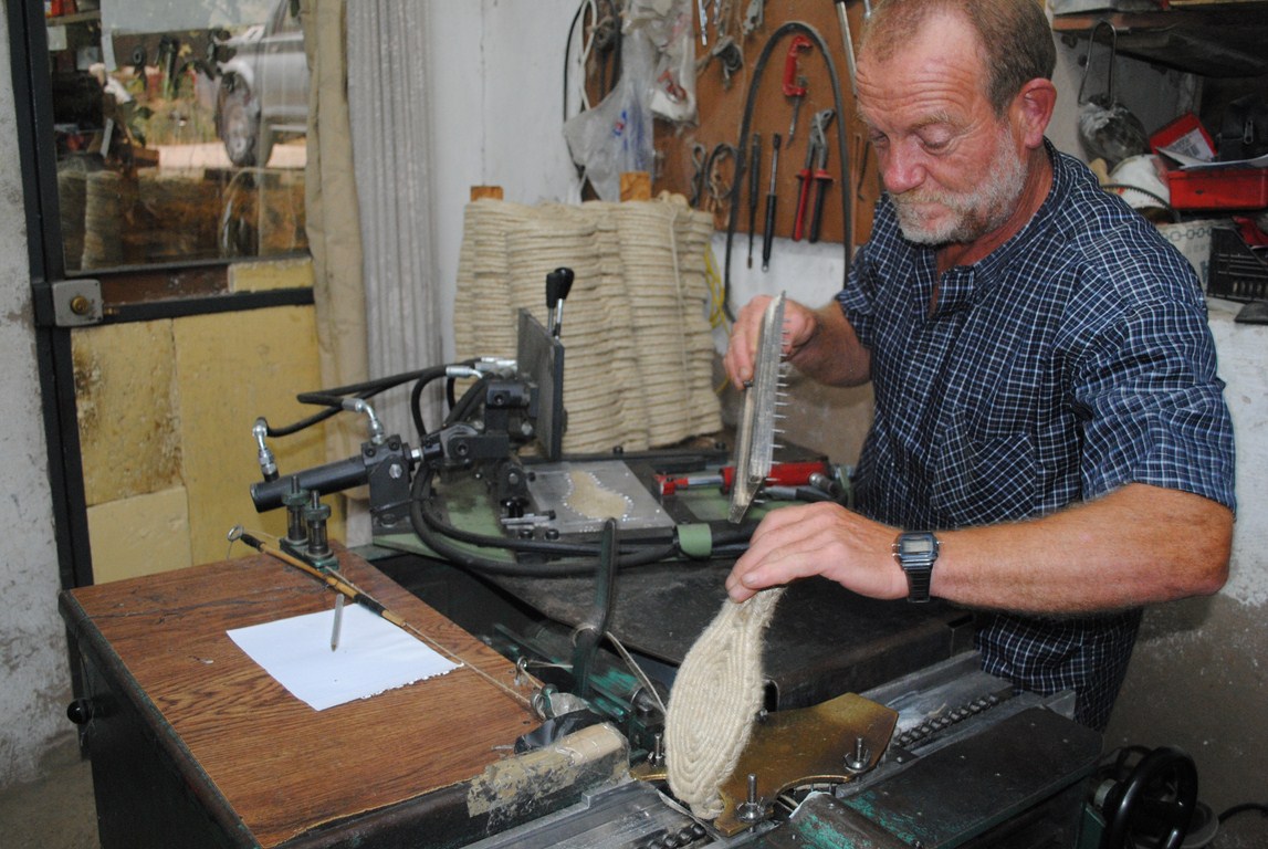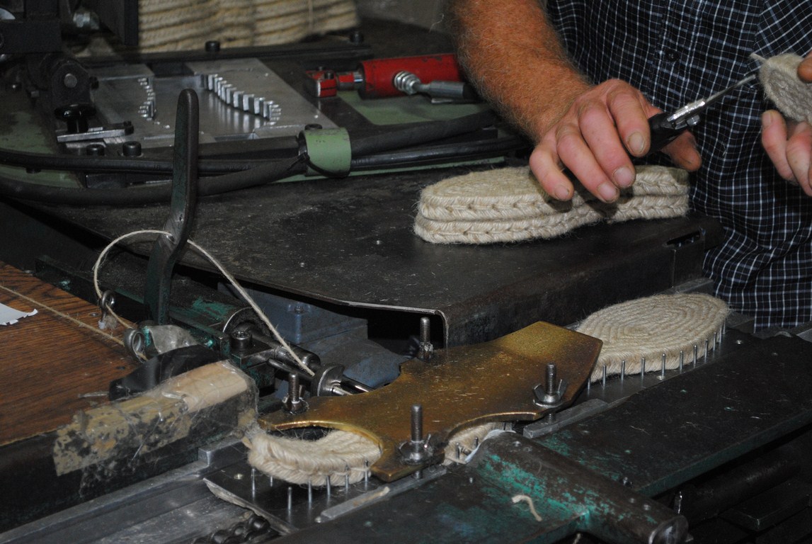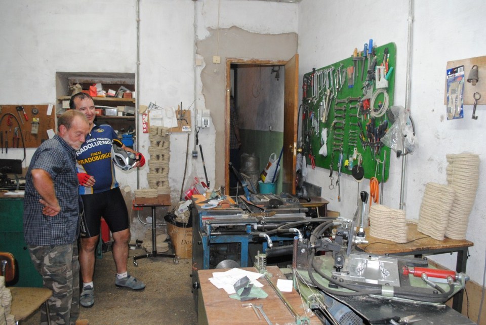 Cervera del Río alhama. Esta localidad es la capital de la alpargata. Nos enseñan un taller donde se hace de modo artesanal.