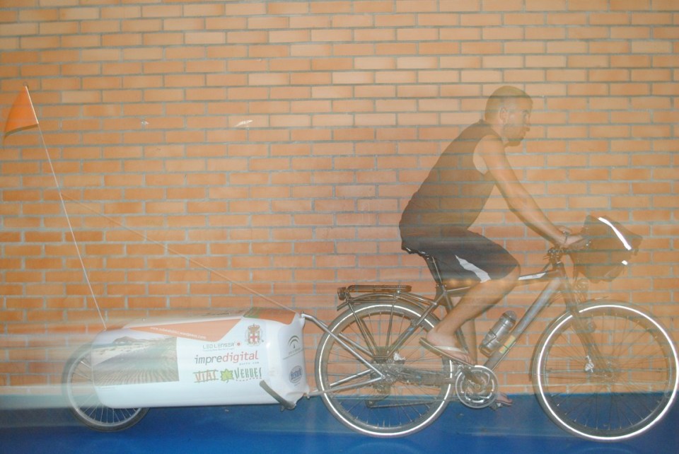 La rueda trasera de la bici de Miguel tiene un pequeño pinchazo y en un instante la cambia.