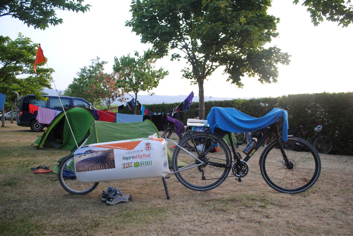 Entonces comenzó la operación rescate. Avisamos a Zubi, el colega de la casa en Larrea para saber si podía ayudarnos. Nosotros para entonces andabamos cerca de Alegría. Justo cuando decidimos sentarnos a tomar algo antes de acabar la etapa apareció Zubi diciendo: –Ya decía yo que era raro que os saltarais el primer bar del pueblo–. Después de unos minutos se fue en busca de Artu y Sole.