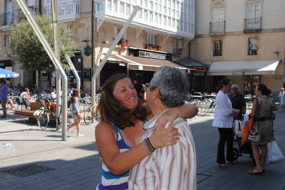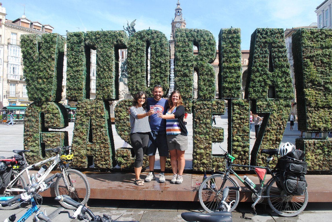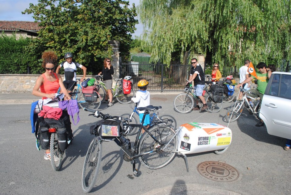 Acabamos de subir las fotos al blog. Hoy es 14 de agosto. Todo ha pasado. Todo tiene un principio y tiene un fin. Es una pena o una alegría. Esto va por barrios. En mi caso el barrio donde parece que me he quedado es el de «la tristeza», el de «la pesadumbre», donde residen los recuerdos. Entiendo a la gente que se alegra de acabar. Yo sin embargo me pasaría Vitoria-Gateiz de largo. Pero a pesar de todo y de ser un día de despedidas hubo sonrisas y alegría desde la mañana, hasta la llegada. Ser recibidos por la familia, por los amigos y saber que hemos llegado a nuestro destino marcado también tiene su cosa. Y si a esto se le añade que se hace el recorrido con la pareja, Cristina es cierto que me alegro por ello.