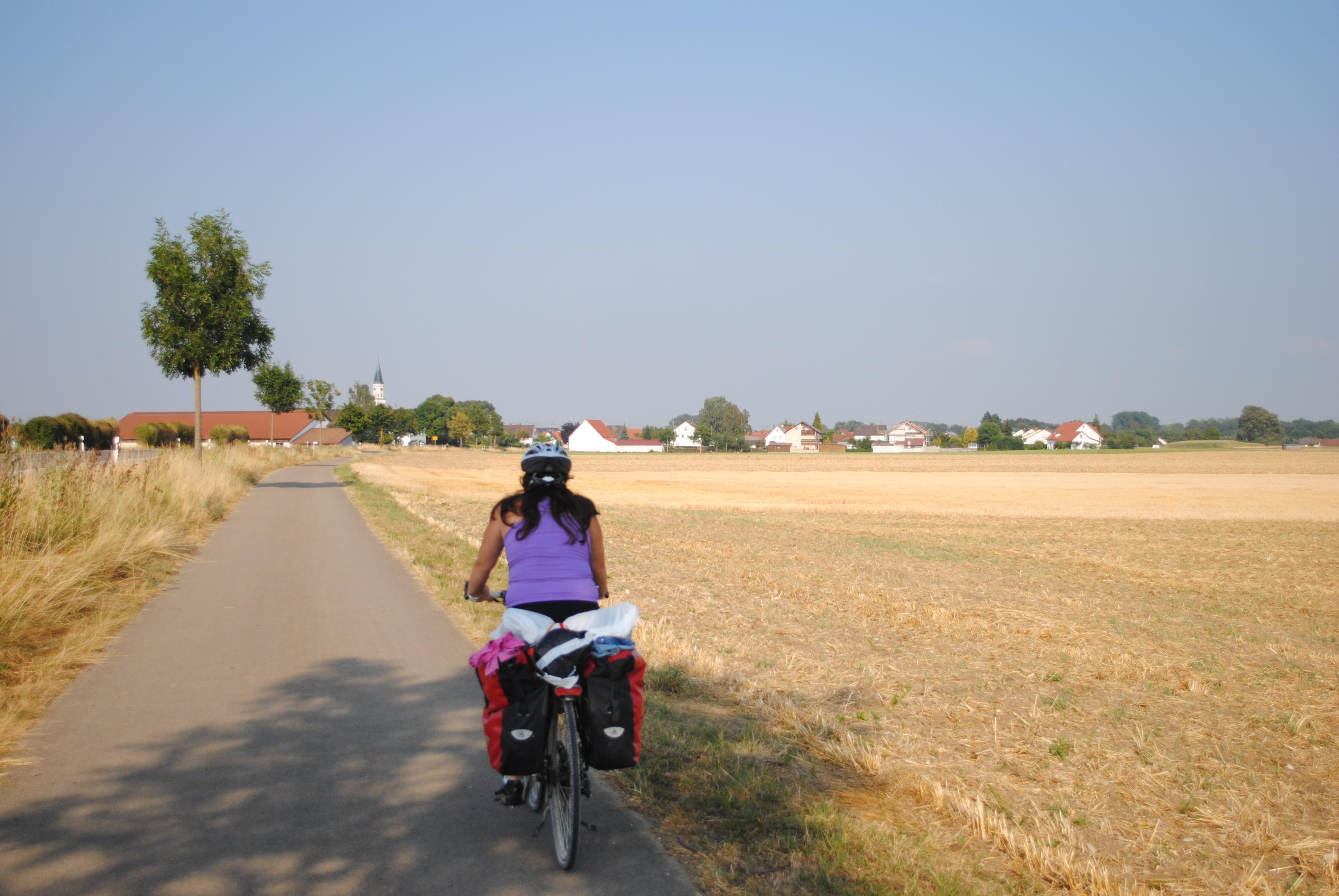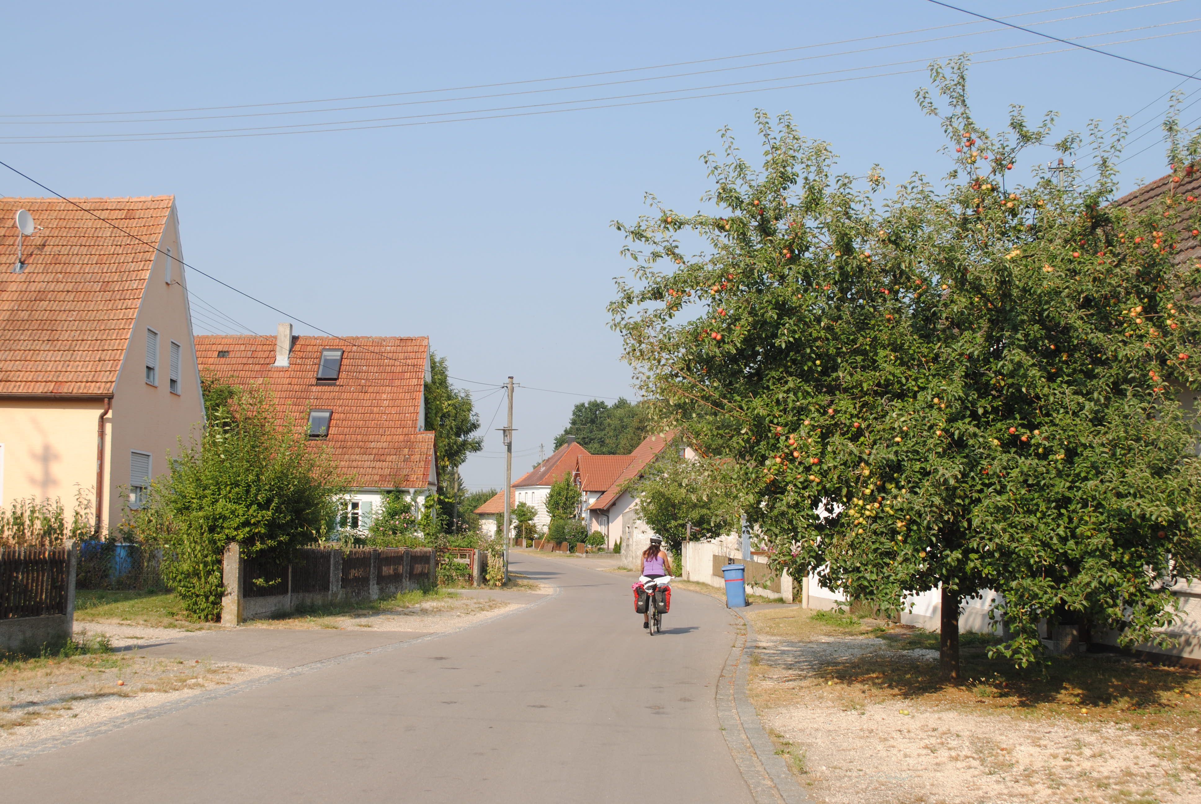 La etapa de hoy se nos antoja un poco durilla por el calor y por el peso que llevamos en nuestros cuerpos y en la mochila. Es difícil de pensar que en estos días en bicicleta durante el día el termómetro no ha bajado de los 33 subiendo en algunos casos a los 36ºC y con una sensación térmica acrecentada por la humedad (hay que recordar que el Danubio esta siempre cerca). No estamos acostumbrados aunque lo parezca a este calor y nos pasamos el día bebiendo agua y sudando como cabrones.
