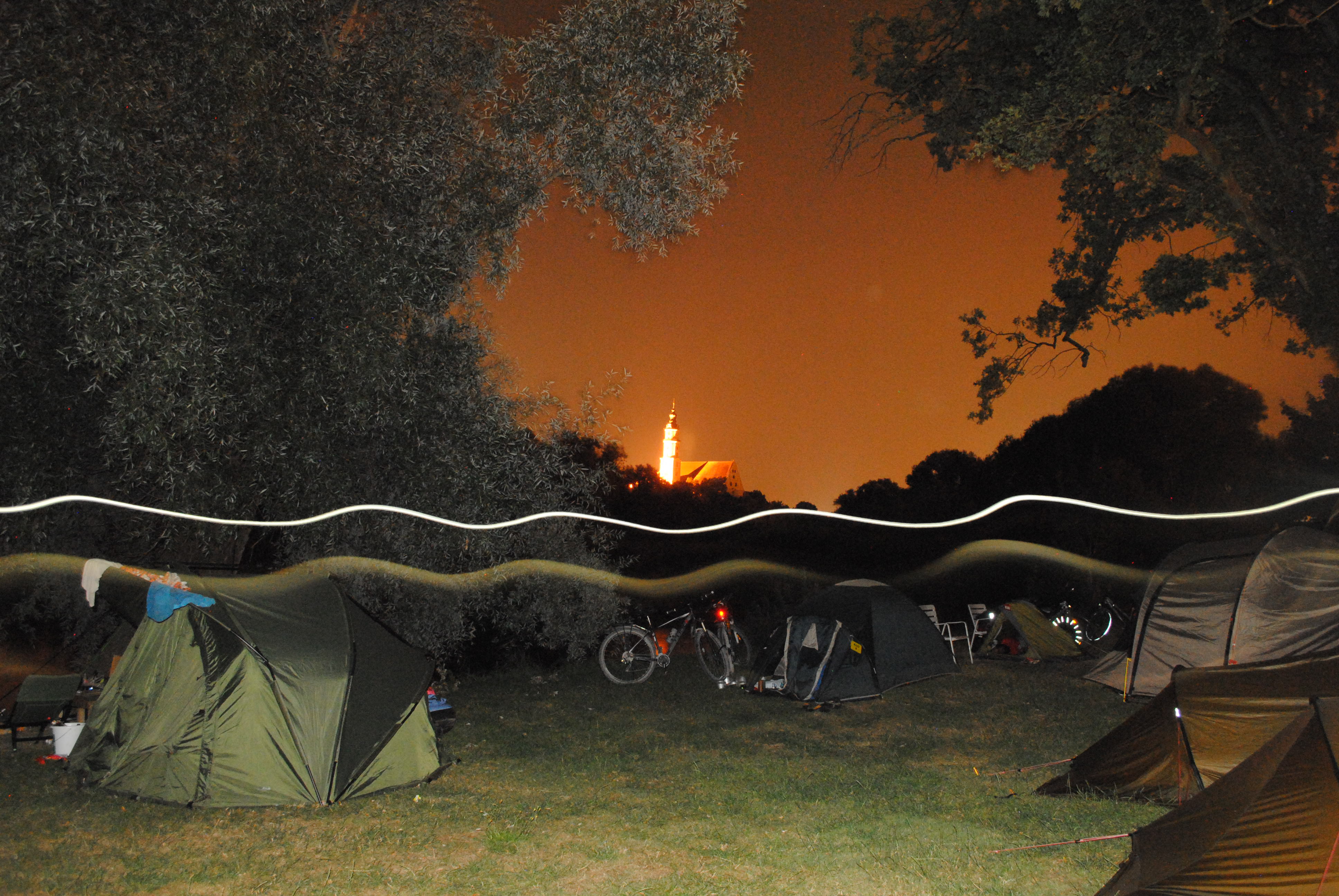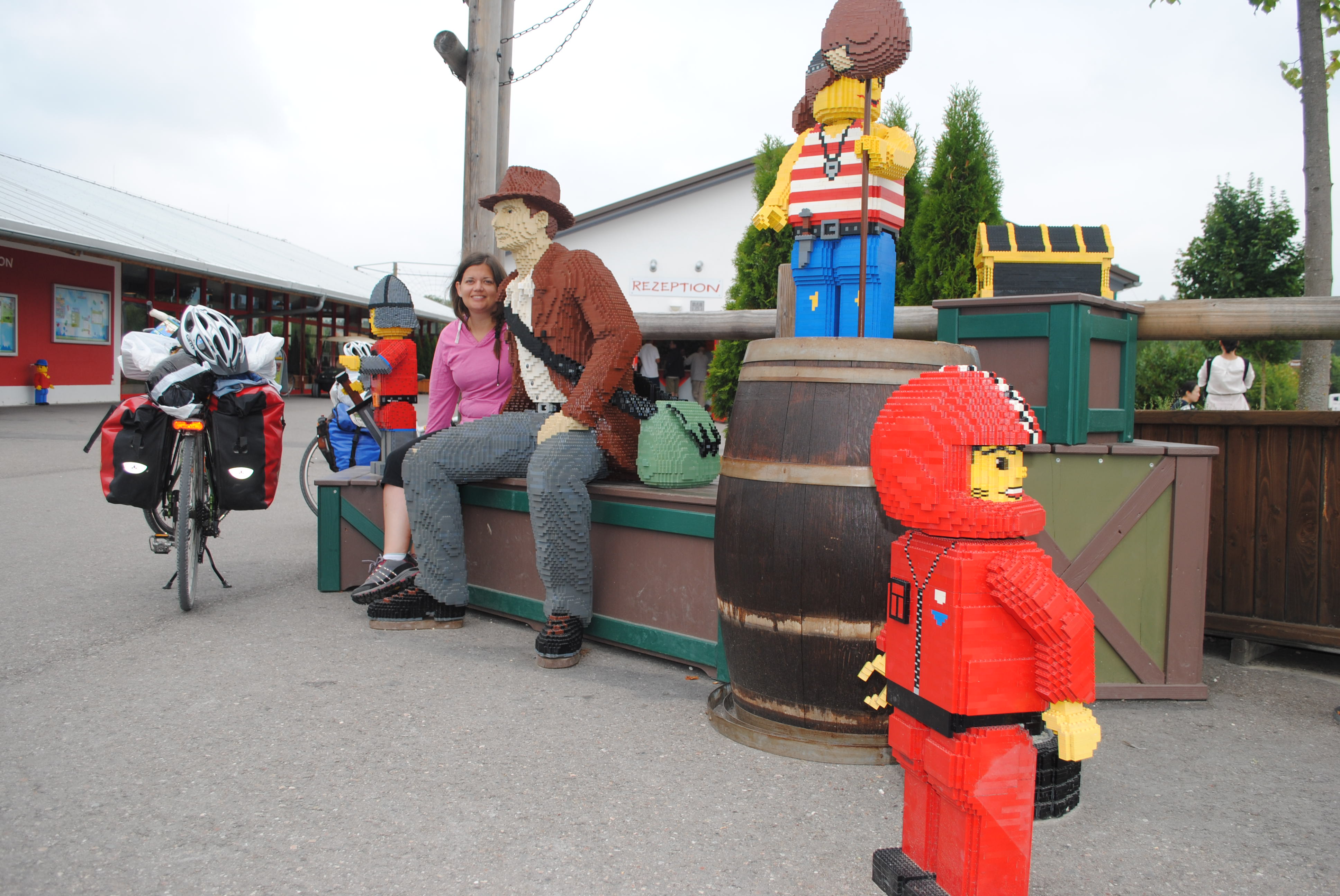 Y en verdad salimos por la tarde de Ulm y llegando a esta localidad buscamos lo que en principio iba a ser la mejor solución. Del camping decir que es caro y si esta lleno pagas algo menos pero duermes fuera de él. Se paga por utilizar el baño y la ducha y el terreno donde te envían, justo enfrente pertenece al camping pero te sientes poco menos que desterrado. Nos ha costado poner la tienda de campaña 28 euros. Junto al camping esta el parque de atracciones de Lego. Os podeis imaginar que sobre todo estaba lleno de familias con críos que hacen noche allí para echar el día en el parque. Nosotros pasamos. Desayunamos y comenzamos a pedalear bajo la amenaza continua de lluvia que nunca cayó.