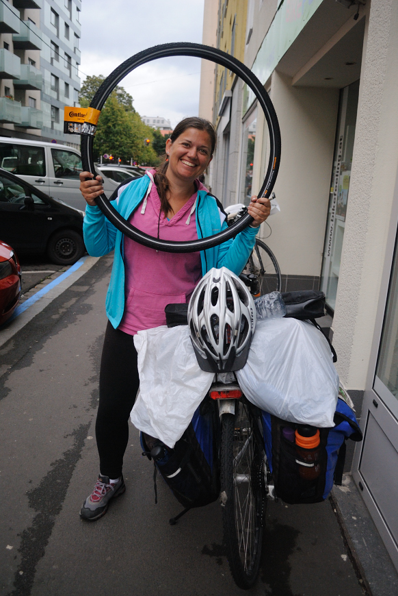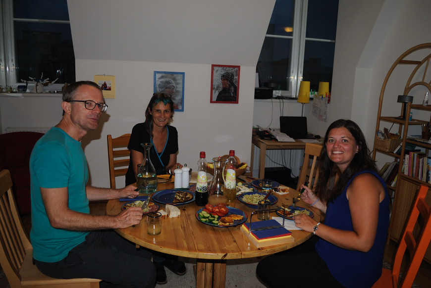 Con Michaela y Hebert de Warmshowers en Linz. Gracias!