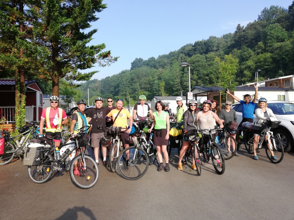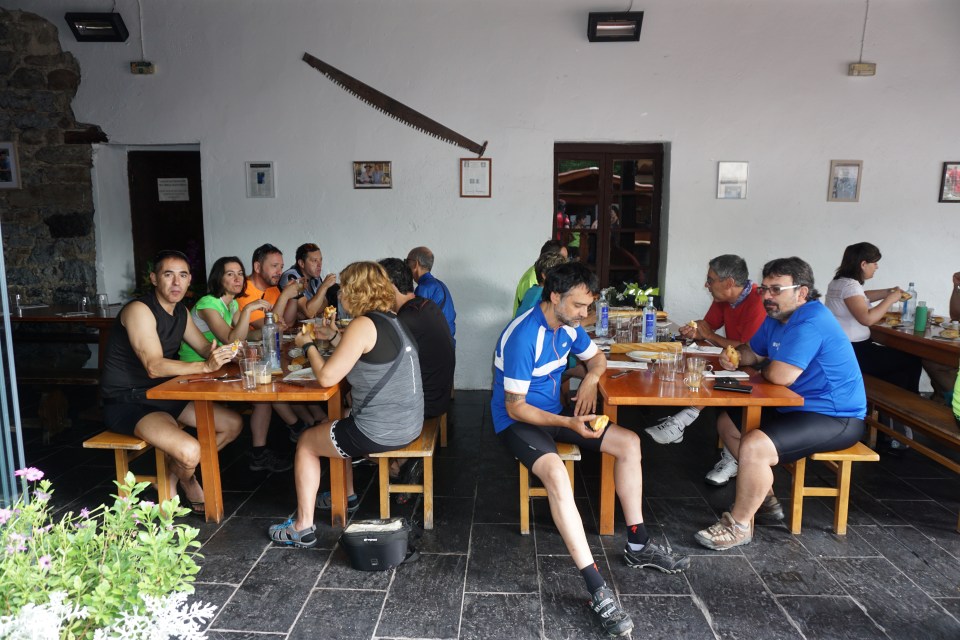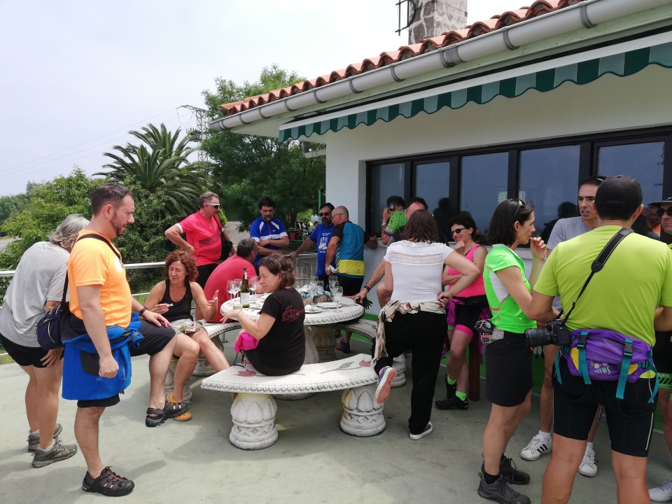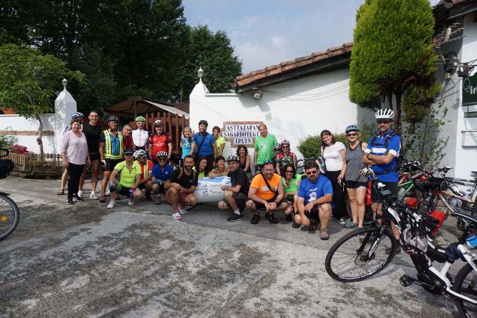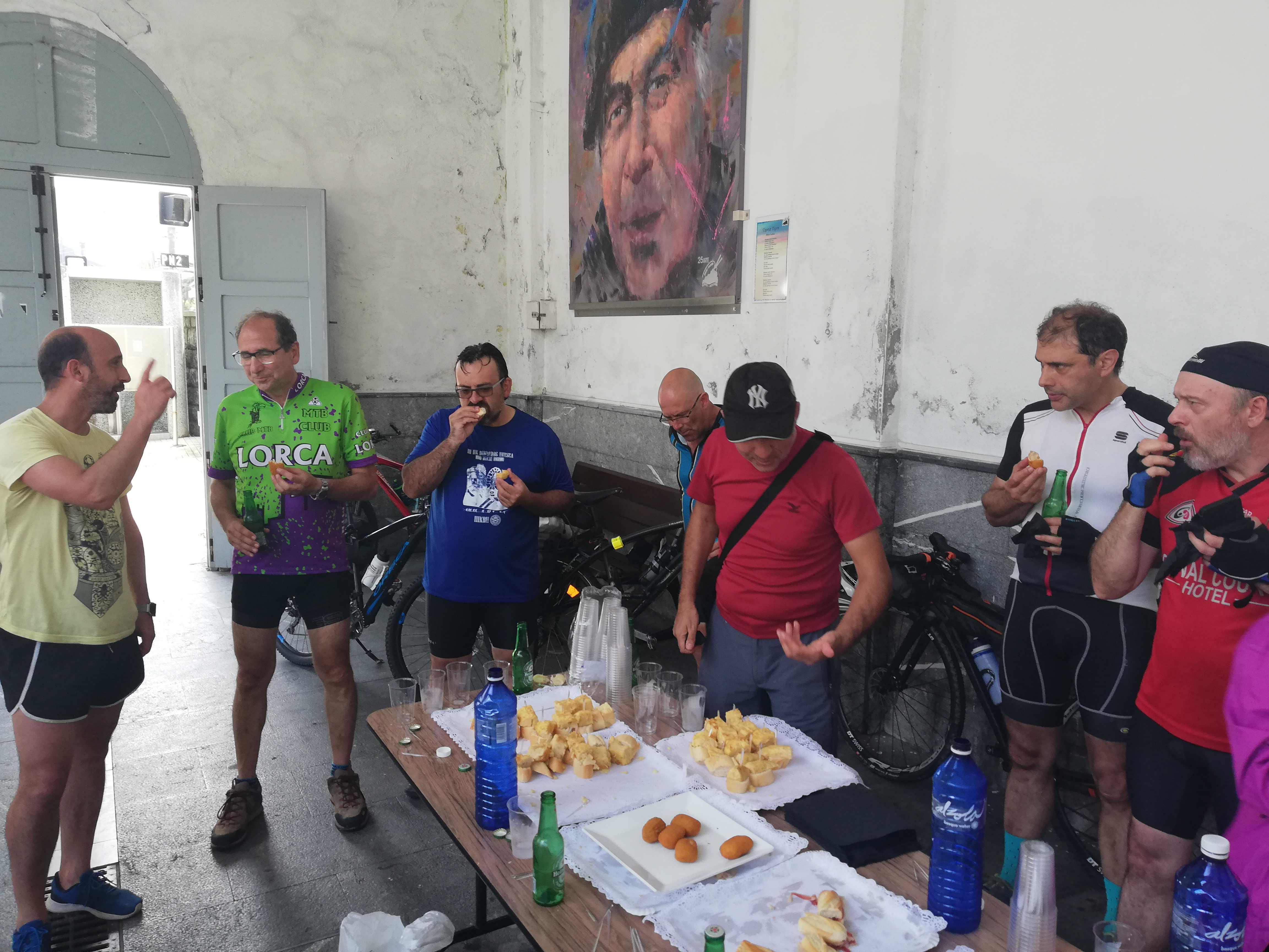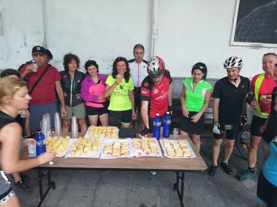 El concejal de Deporte del ayuntamiento de Deba sale al encuentro del pelotón. El ayuntamiento nos sorprende con un picnic y ofrece el servicio voluntario de una persona fascinada por la historia local, Alex