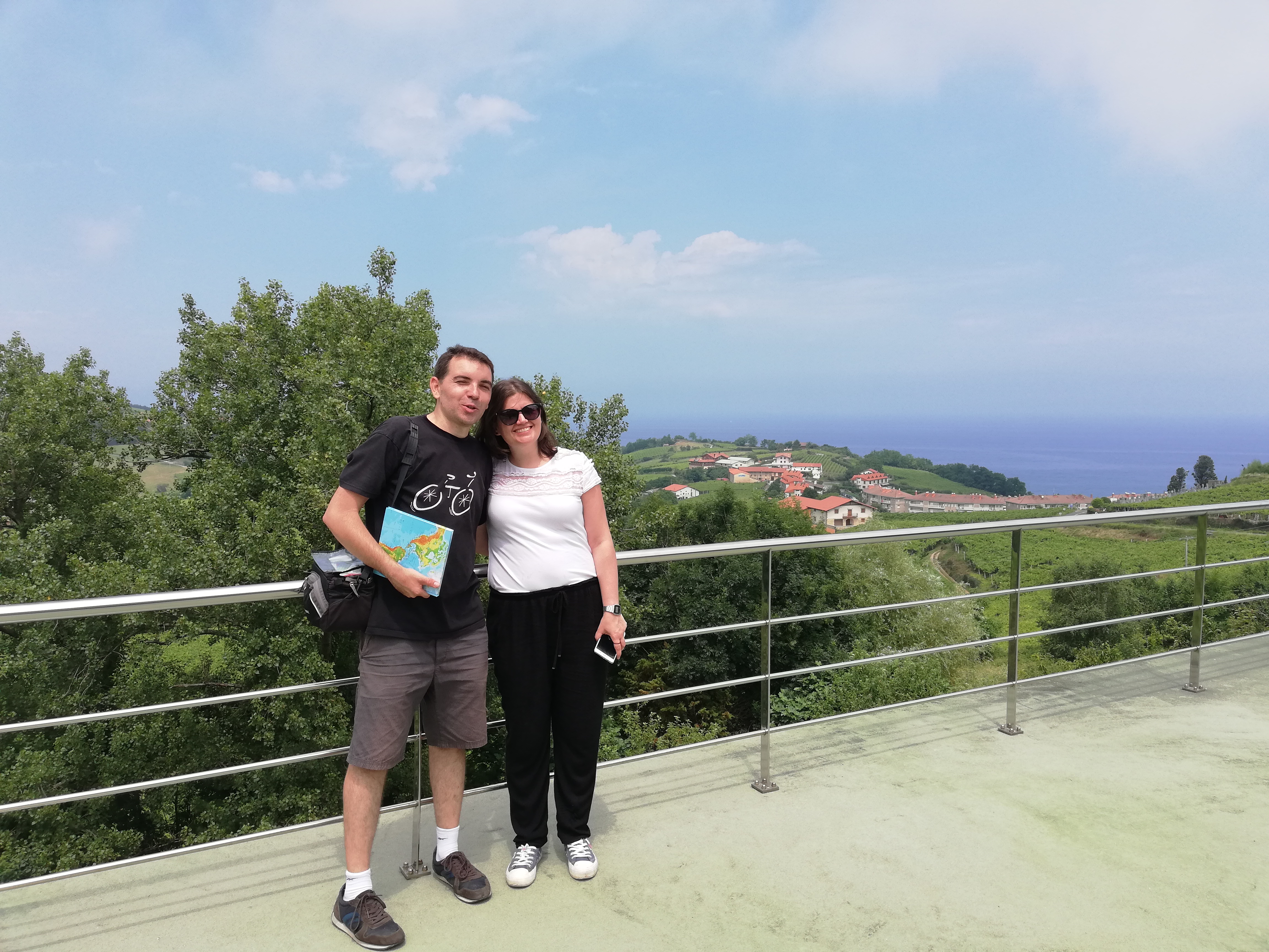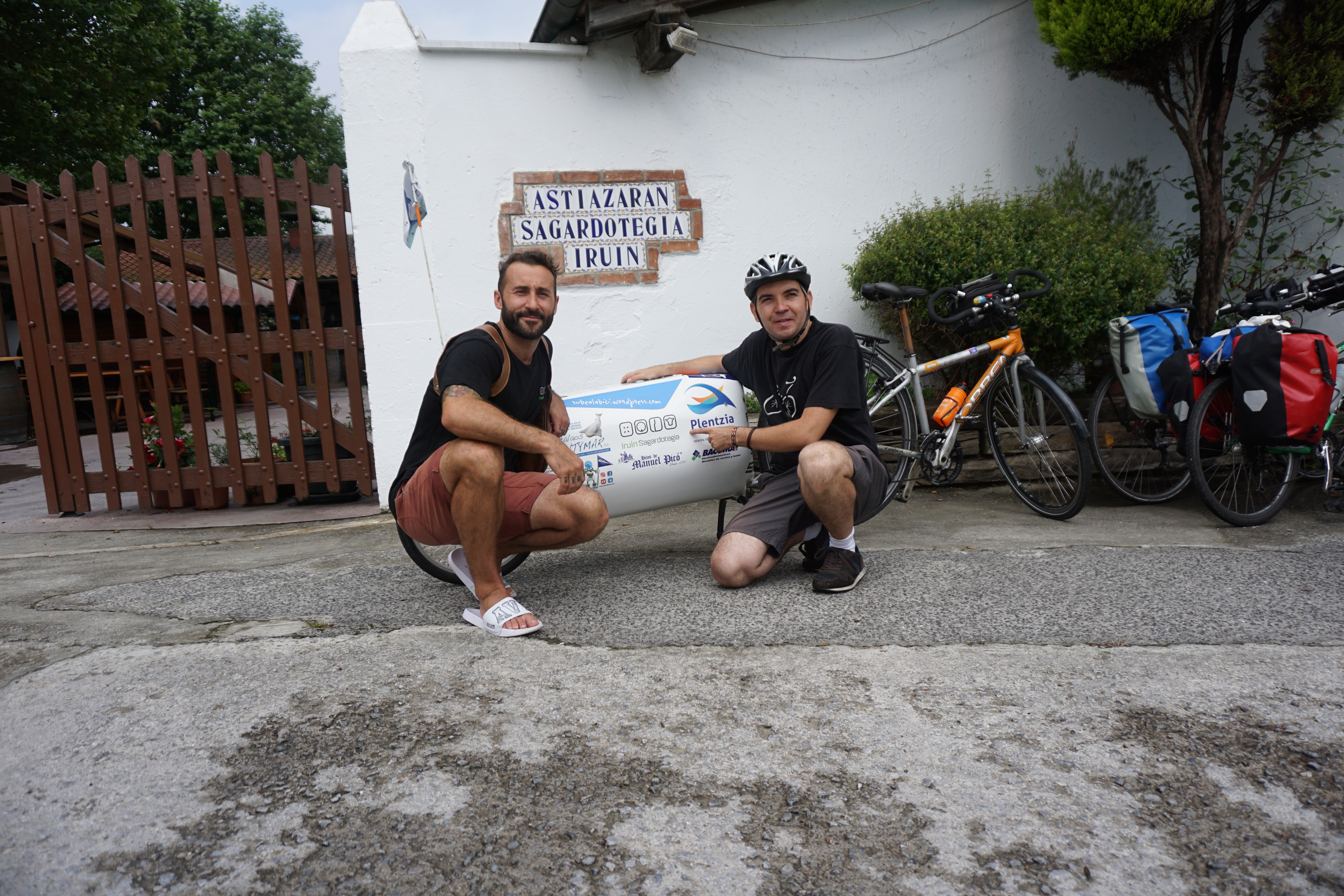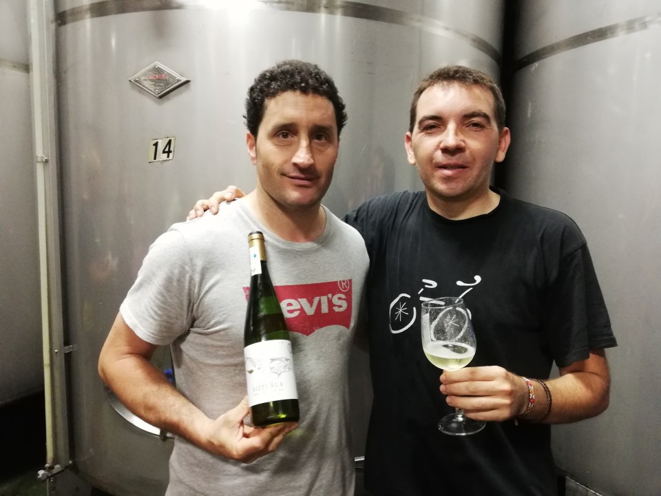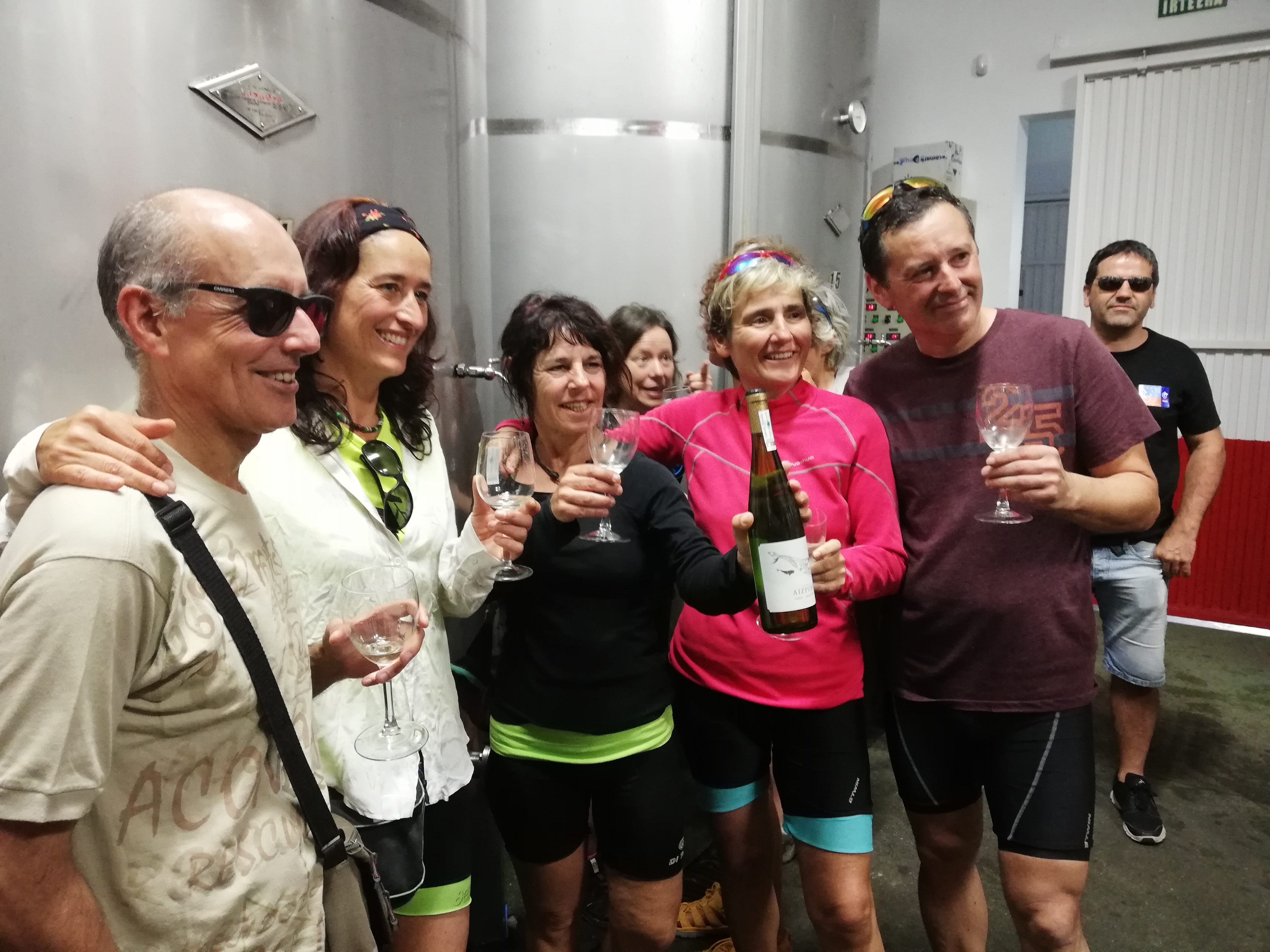 Ion, propietario de la bodega con el periodista Danes Rune que acompaña al grupo. Rune trabaja sobre un articulo de los balleneros vascos y promueve una ruta en bici por la costa vasca