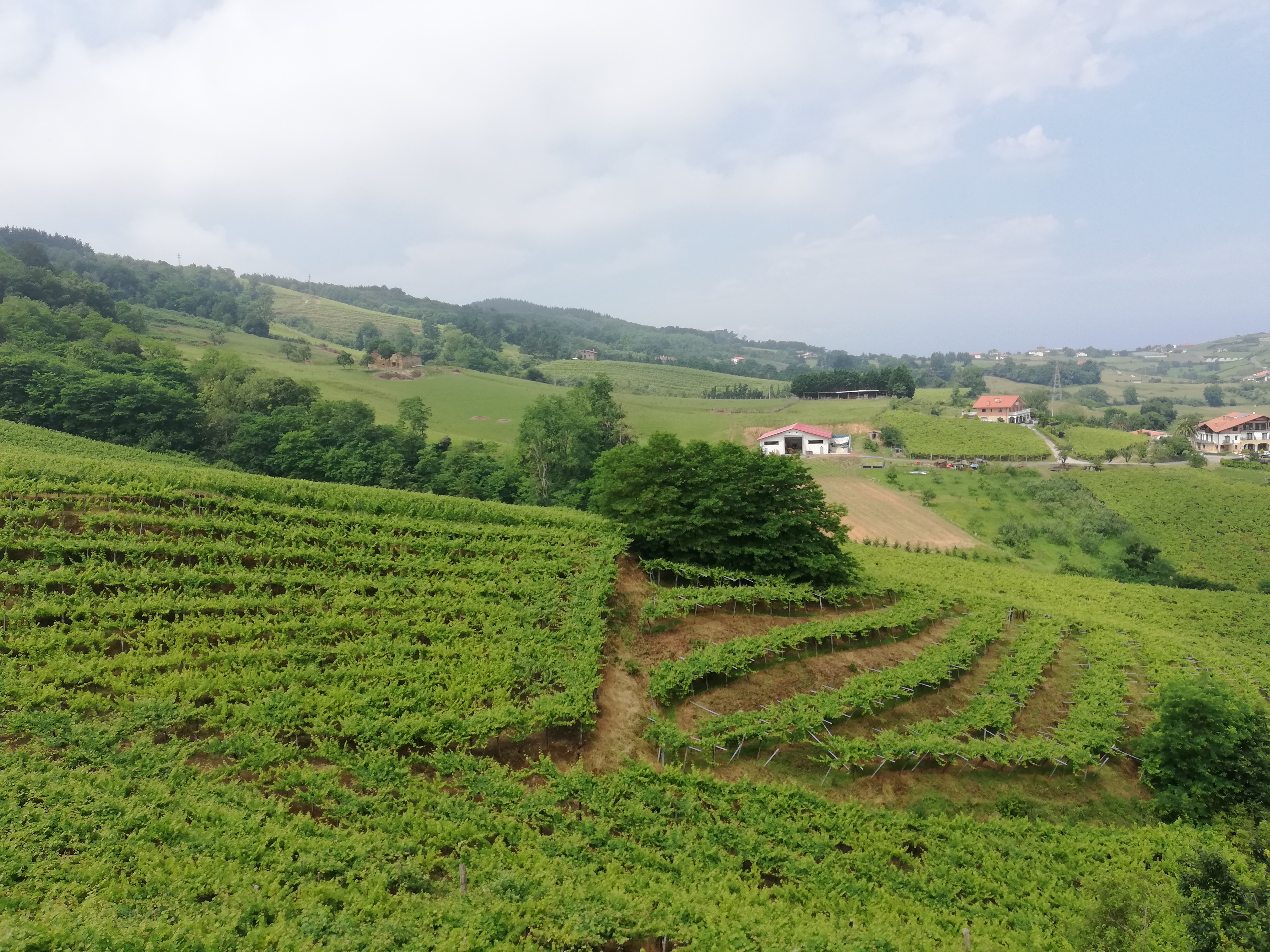 En los altos de Getaria el paisaje dominante son las viñas, los caserios dispersos y el mar de fondo