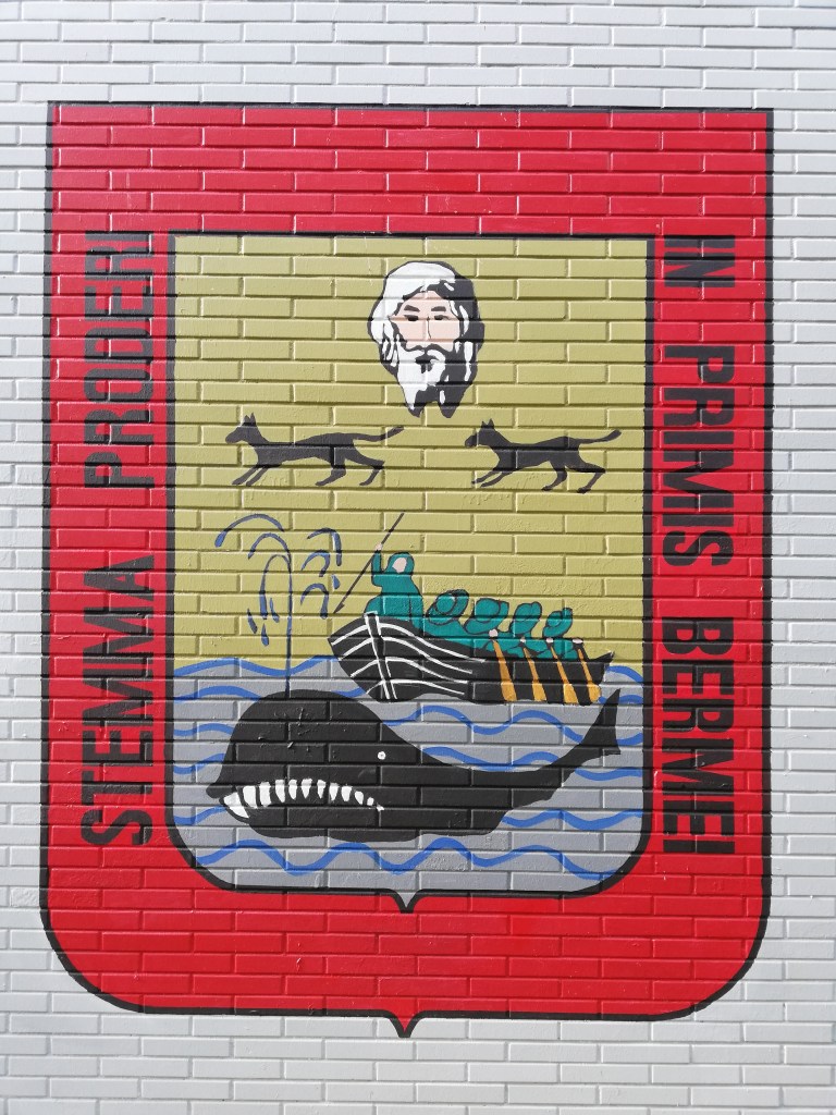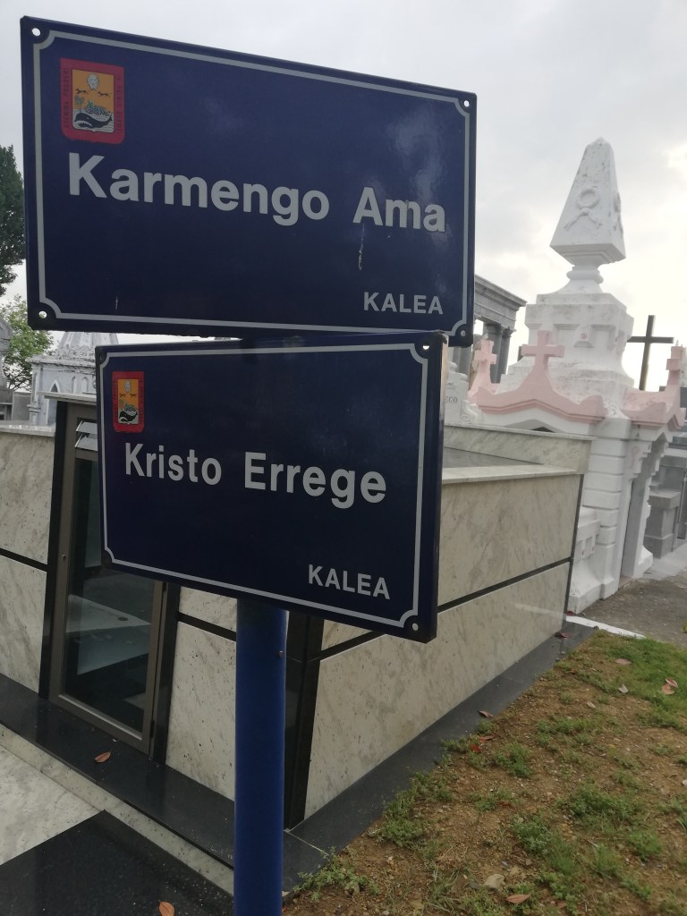 El escudo de Bermeo y la ballena. Señalización de las calles del cementerio