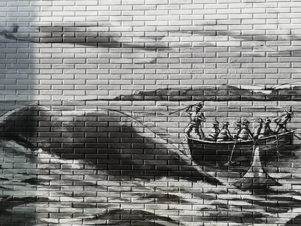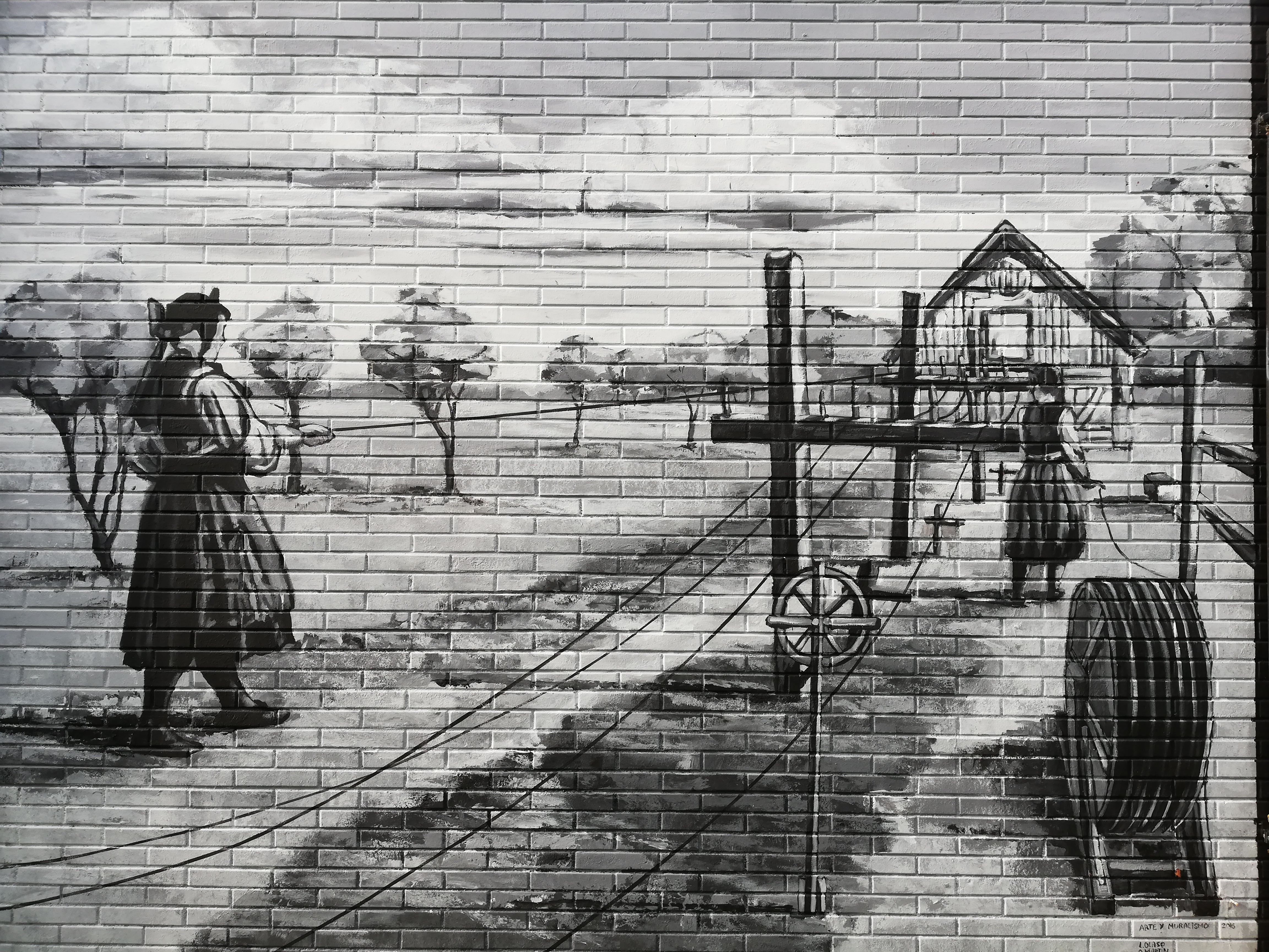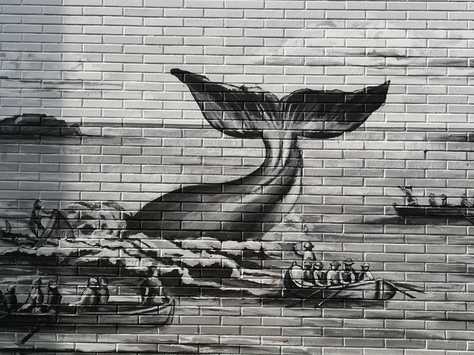 En el muro de la Atalaya. Bermeo. Más de 60 mt sobre la historia y relación de la localidad con la ballena.