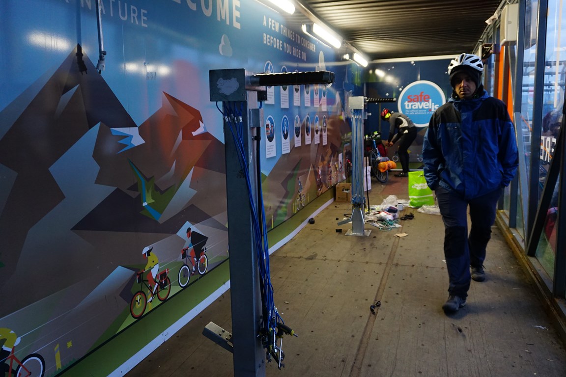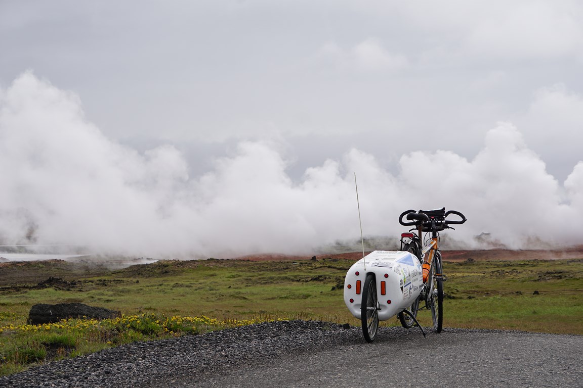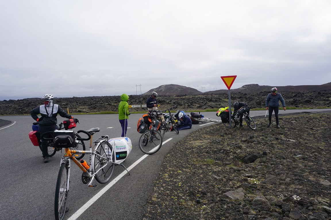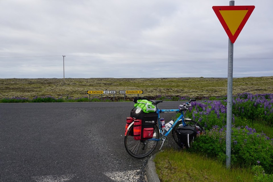 Llegamos a Keflavik a la 01:30 hora local. De día. Mejor dicho anocheciendo pero nunca llegando a noche cerrada. Frente al aeropuerto hay un espacio con dos bancos de bicicleta y la herramiento esencial para montar o desmontar la bici. Como nos gustaria que el resto de los aeropuertos tomaran conciencia y tuvieran un espacio así dedicado a todos aquellos que nos movemos de vez en cuando en bicicleta.