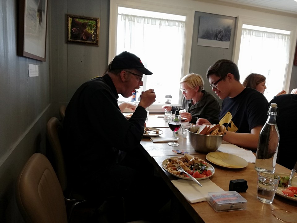 Hoy toca descansar. Tenemos que preparar la comida en el centro del zorro ártico pero desconocemos el número de personas que se pueden presentar. No es la primera vez que nos sucede. En las otras citas tampoco nos decía nadie si acudirian o no a la quedada. Conienzo a pensar que tenía razón Jonh Carlin cuando en su libro sobre Islandia decía que los islandeses pueden cambiar sus planes a última dependiendo del tiempo. Igual es simplemente que nos les gusta adquirir compromisos si luego no pueden acudir. Por nuestra parte tampoco podemos hablar mucho porque en general el grupo se quedó amarrado a lo sacos de dormir y cuando nos juntamos todos de nuevo habían pasado dos horas. Pero cocinamos y quedamos muy bien.