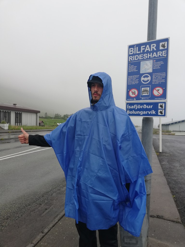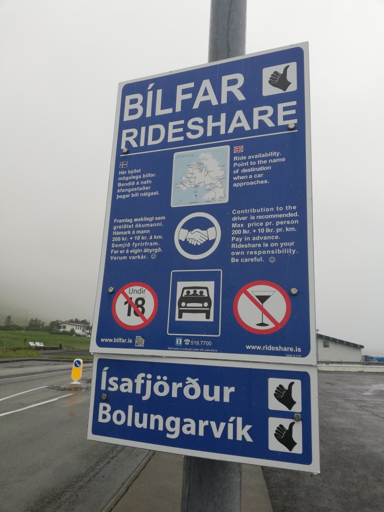 Hoy no hemos cogido la bici. Y hacemos autostop sin querer junto a una señal que habla precisamente del autostop.