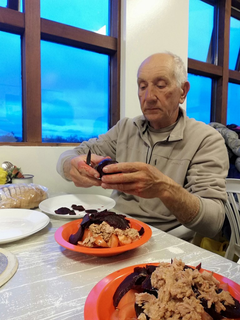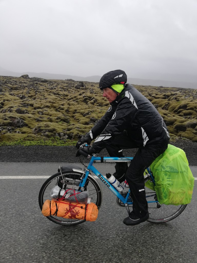 Entiendo la vida como un torbellino de emociones y me ilusiona saber que detrás de una aventura vendrá otra. Ha sido además de una aventura un homenaje a un ser entrañable, grande, magnífico que ha decidido colgar la bici (al menos en viajes de larga duración) en este viaje después de una vida pedaleando. Si tuviera conocimientos y medios en producción audiovisual haría un documental sobre el. Por una razón que nos une. No hay persona que conozca que viva entorno a la bici como el. Conozco a gente que viaja en bici, otros que reivindican su uso en la ciudad, otros que compiten en carreras… Pero no que reúna todos esos campos. A mi por ejemplo me gusta viajar con alforjas y animo a la gente a usar la bici en la ciudad pero confieso que ni conozco componentes de la bici ni sigo las carreras y no se quien ha quedado el tercero del tour, del giro o de la vuelta. Y a veces en mi cabeza hago un hueco para otras cosas. Pero esta persona que es un homenaje vivo a la bici y que ha decidido dejar la bici en aventuras largas lo ha hecho a los 75 años. Sigue y seguira pedaleando y espero que si cambia de opinión me llame y salgamos a recorrer mundo. Ha soportado estoicamente lo que menos le gusta, la lluvia. Un día tras otro porque así es Islandia. Ha tenido que bajar un par de peldaños y amoldarse al grupo pero lo ha hecho.
