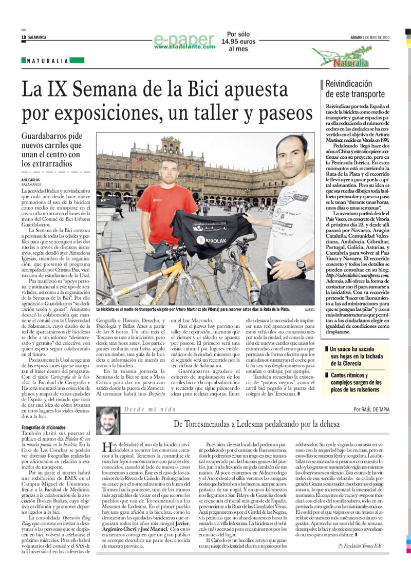 La Voz de Almeria «De Almería  a Vitoria en bici para pedir ciudades más saludables» (22-06-2012) Artículo